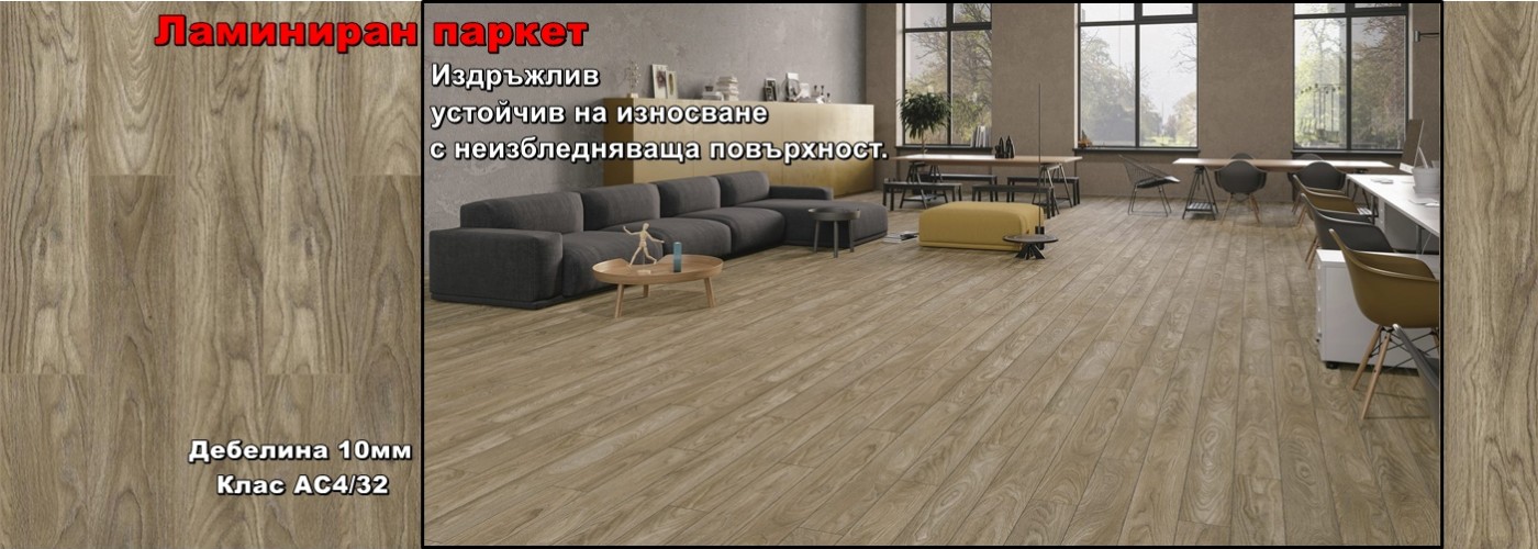 Изкуствена трева Prado Ширина: 4м Цената е за 1 кв.м. Изкуствената трева Prado имитира свежа зелена морава, лесна за поддръжка. Може да ..10.17€ (19.90лв.) 12.02€ (23.50лв.)Лайсната с чупещ се ъгъл е аксесоар към колекцията 3D стенни панели .Тя представлява МДФ обшивка в цвят, подходяща за съчетание със стенния п..5.06€ (9.90лв.) 5.62€ (11.00лв.)Ламиниран паркет 8мм AC4/32 4915 Дъб Buckingham Цената е за 1 кв.м. Дебелина : 8мм Клас на износоустойчивост : АС4/32 клас..12.53€ (24.50лв.) 13.91€ (27.20лв.)Ламиниран паркет 5236 Дъб Грийнланд 8мм / 31 класЦената е за 1 кв.м.Дебелина :8мм. Клас на износоустойчивост : АС3/31Дължина на ламелата : ..7.15€ (13.99лв.) 8.79€ (17.20лв.)Ламиниран паркет 5940 8мм / 31 класЦената е за 1 кв.м.Дебелина :8мм. Клас на износоустойчивост : АС3/31Дължина на ламелата : 1285мм.Ширина..7.66€ (14.99лв.) 8.85€ (17.30лв.)Ламиниран паркет Шерууд ДъбЦената е за 1 кв.м.БЕЗПЛАТНА ДОСТАВКА ПРИ ПОРЪЧКА НАД 20 кв.м. - СЛЕД ПЛЕДВАРИТЕЛНО ЗАПЛАЩАНЕ Дебелина:10ммКлас:АС4/..11.70€ (22.88лв.) 15.28€ (29.89лв.)